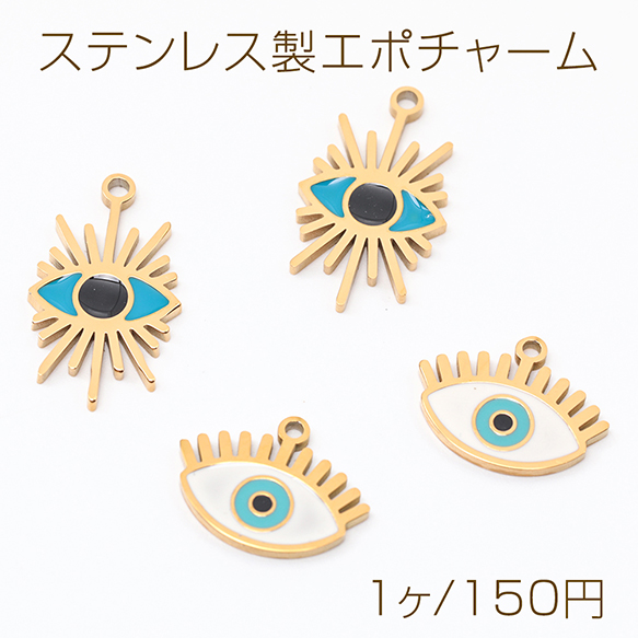 ステンレス製エポチャーム 目 眼 瞳 ユーモア 電気メッキ加工 SUS304 メタルチャーム 全2種(1ヶ)