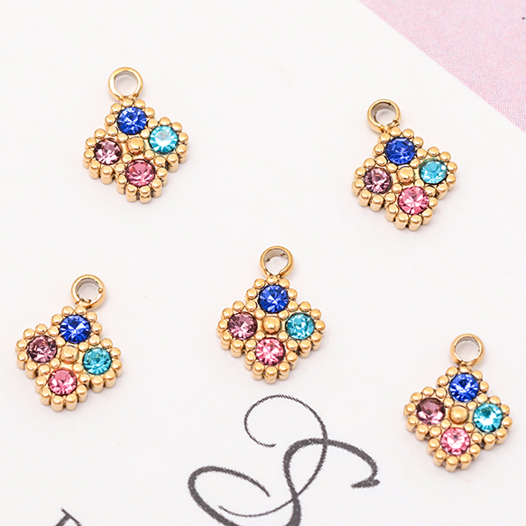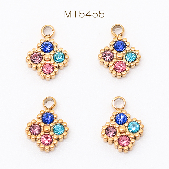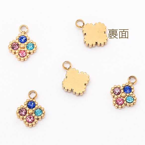 ステンレス製ガラスチャーム 四つ葉 クローバー 電気メッキ加工 SUS304 メタルチャーム 約6×8mm(1ヶ)