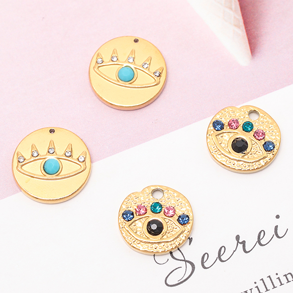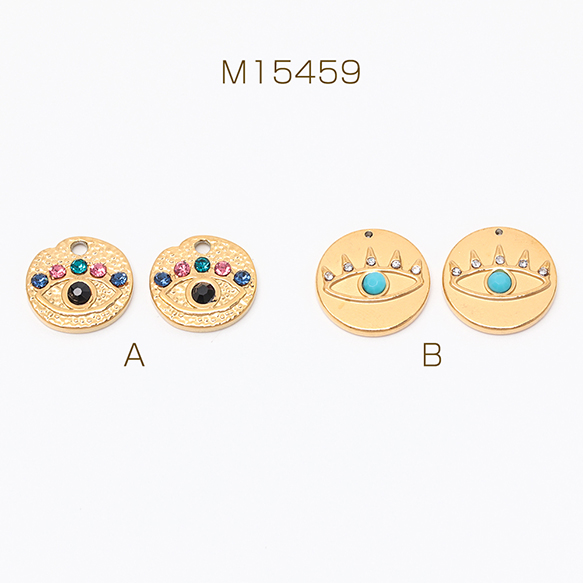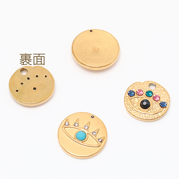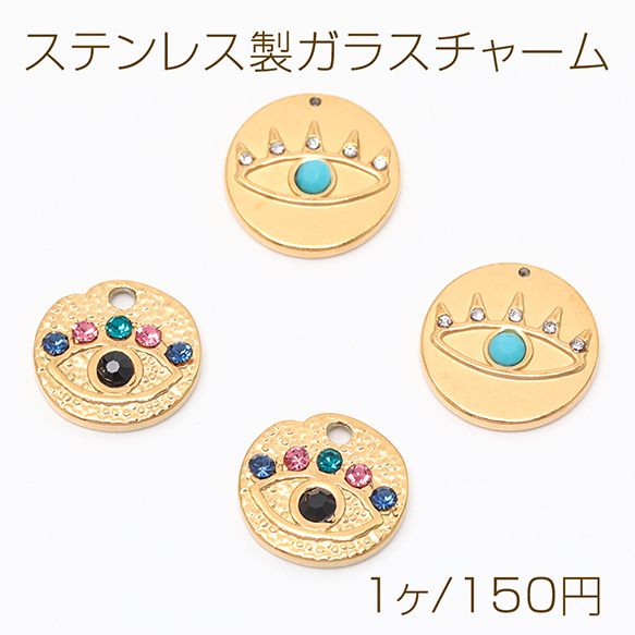 ステンレス製ガラスチャーム サークル 目 眼 瞳 電気メッキ加工 SUS304 タグ プレートチャーム 全2種(1ヶ)