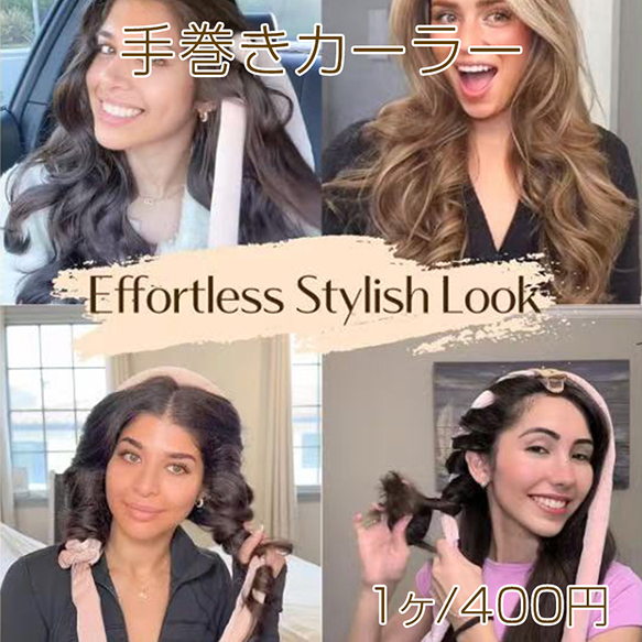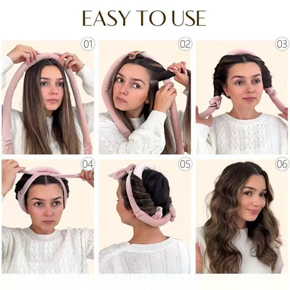 手巻きカーラー 太巻き ヘアカーラー バンド付き カチューシャ シルク調 寝ながらゆるパーマセット(1ヶ)