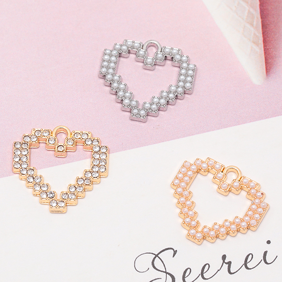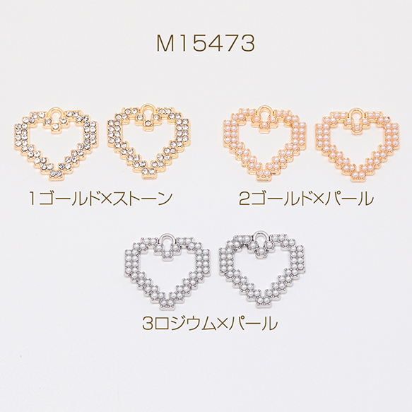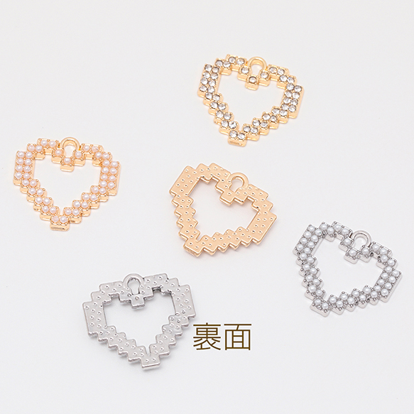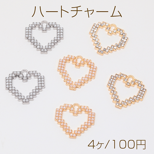 ハートチャーム ドット フレームチャーム パール/ストーン メタルチャーム 約17×17mm(4ヶ)
