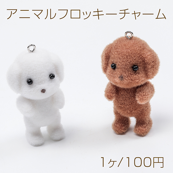 アニマルフロッキーチャーム プードル いぬ 犬 ペット アニマル 動物 犬チャーム 樹脂チャーム 約26×49mm(1ヶ)