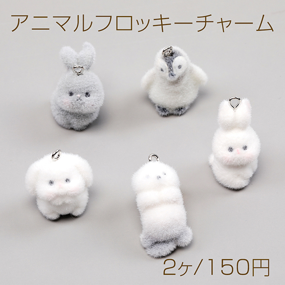 アニマルフロッキーチャーム 動物 アニマル うさぎ ペンギン ラッコ 生き物 樹脂チャーム 全5種(2ヶ)