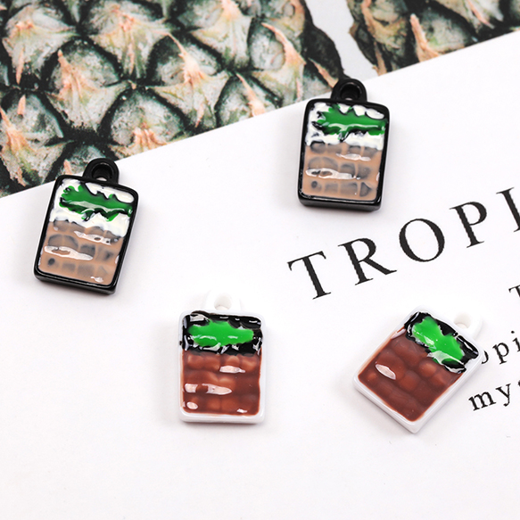 樹脂チャーム サラダ プレート 食品サンプル 手書き エポ ミニチュアチャーム 約8×14mm(4ヶ)