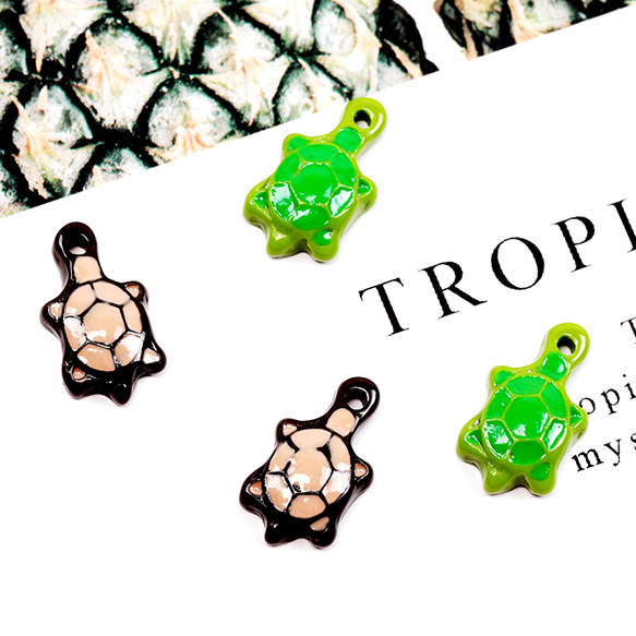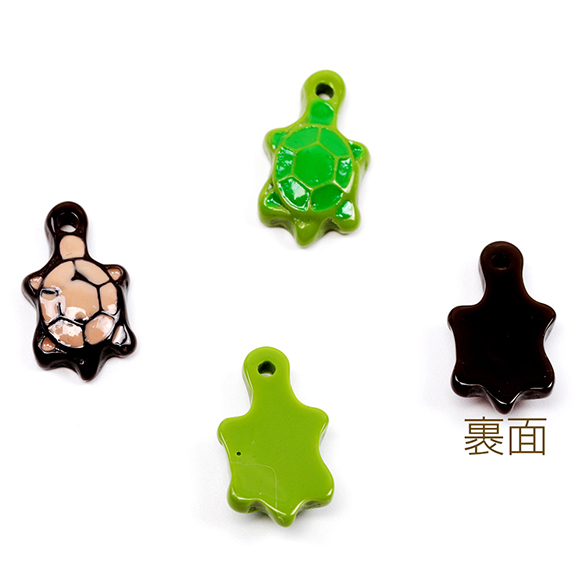 樹脂チャーム カメ 亀 手書き エポ ミニチュアチャーム 約9×15mm(4ヶ)