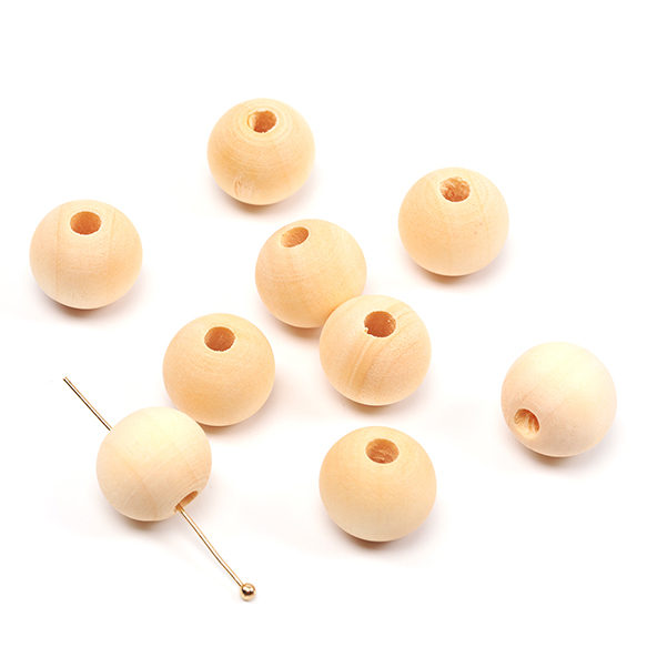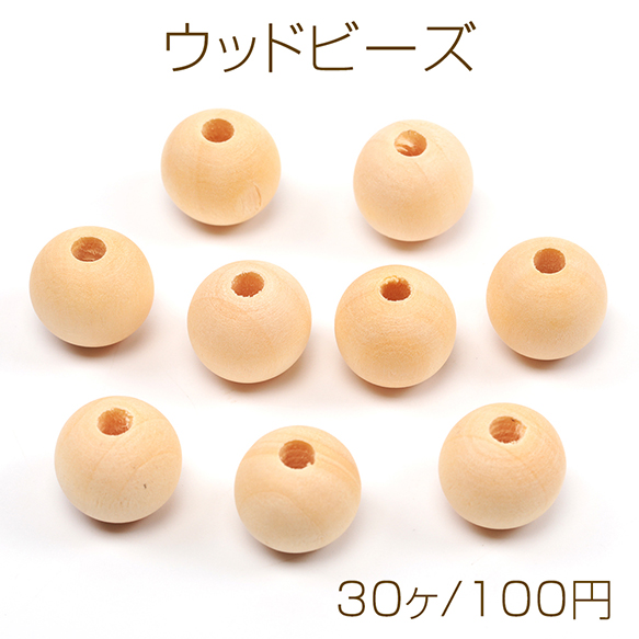 ウッドビーズ 木製 ナチュラル 丸玉 ラウンド 約14mm(30ヶ)