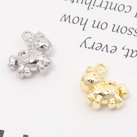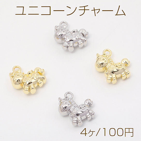 ユニコーンチャーム 立体 メルヘン 幻想的 メタルチャーム 約13×14mm(4ヶ)