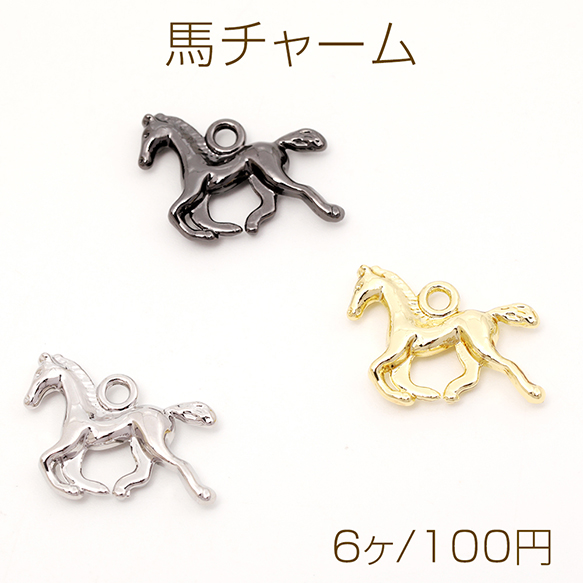 馬チャーム ウマ 競走馬 立体 生き物 メタルチャーム 約14×20mm(6ヶ)