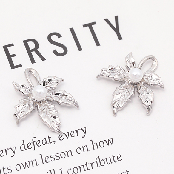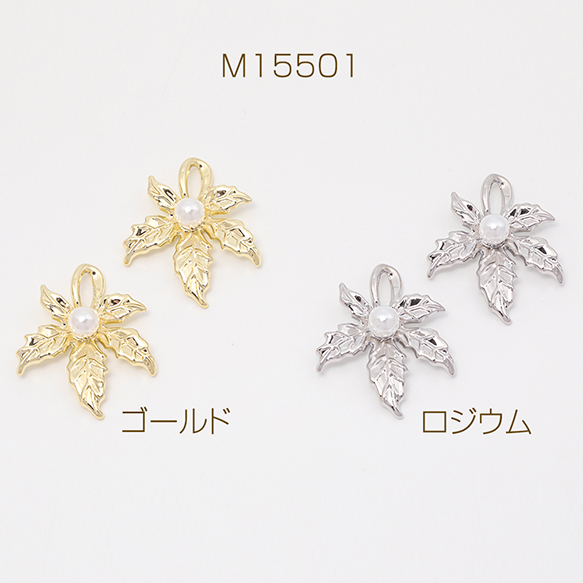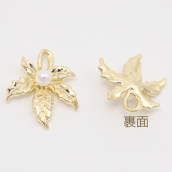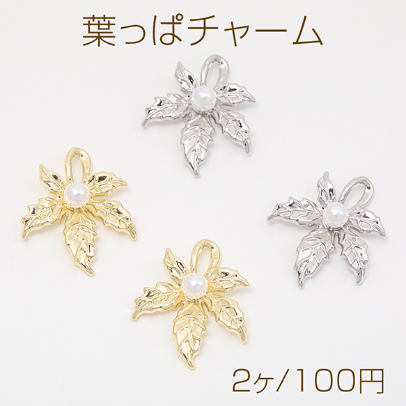 葉っぱチャーム メープル 楓 リーフ 植物 ABSパール付き メタルチャーム 約22×26mm(2ヶ)