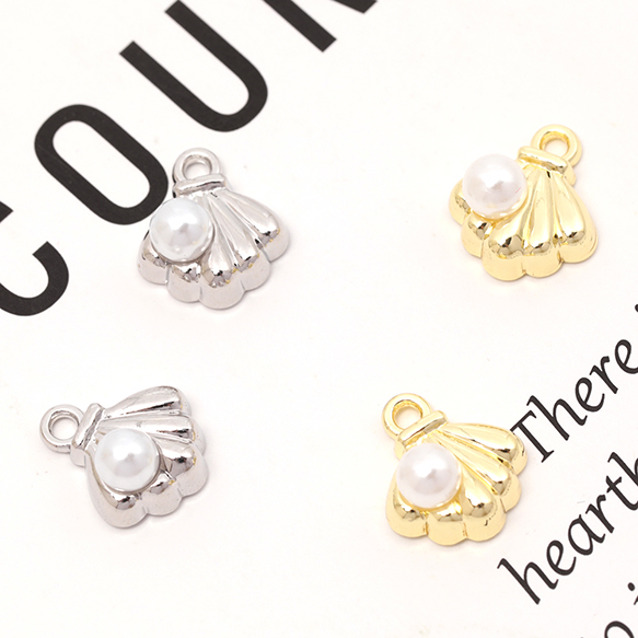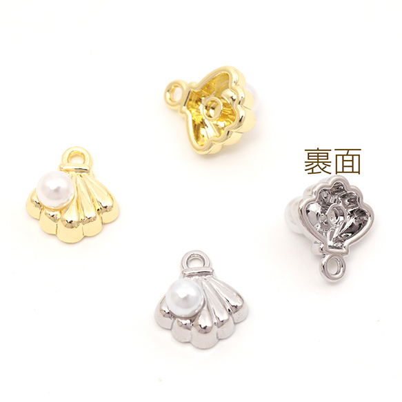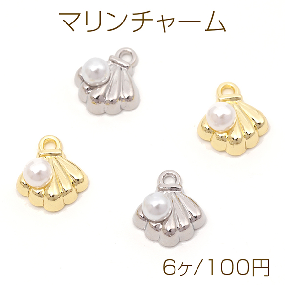 マリンチャーム ホタテ 貝がら 海 ABSパール付き メタルチャーム 約10×11mm(6ヶ)