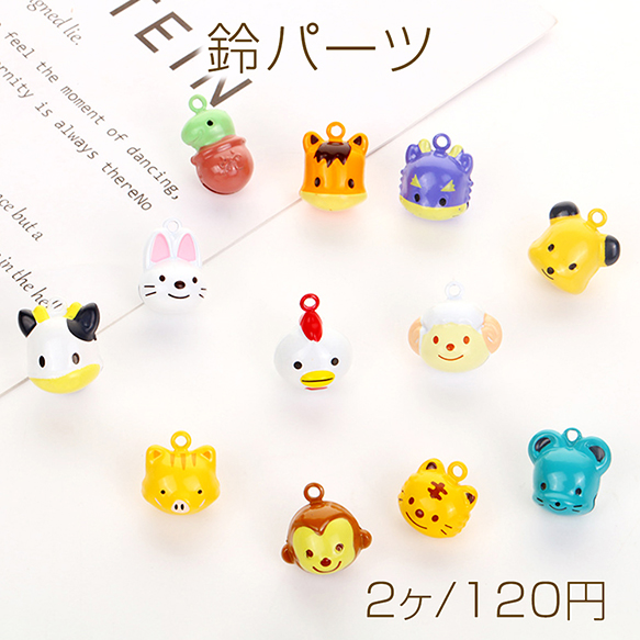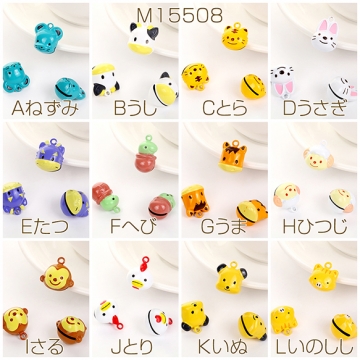 鈴パーツ 干支 動物 アニマル キーホルダー ストラップ制作におすすめ アクセサリー金具 全12種(2ヶ)