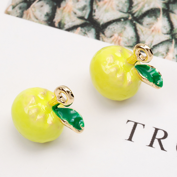 エポチャーム みかん オレンジ フルーツ 食品サンプル ミニチュアチャーム メタルチャーム 約11×16mm(2ヶ)