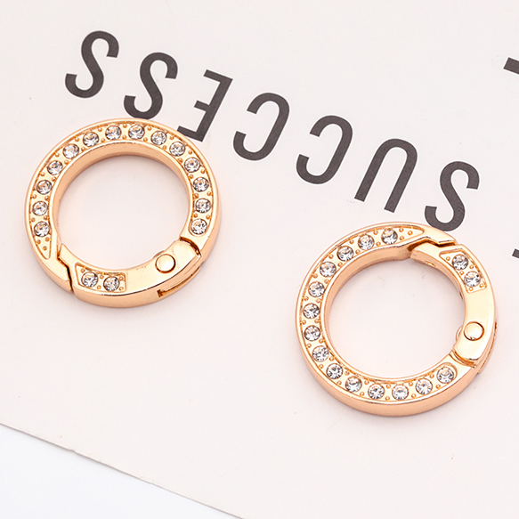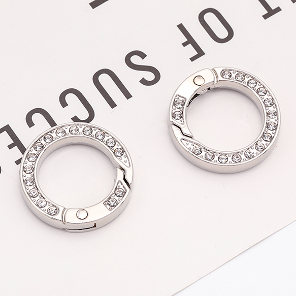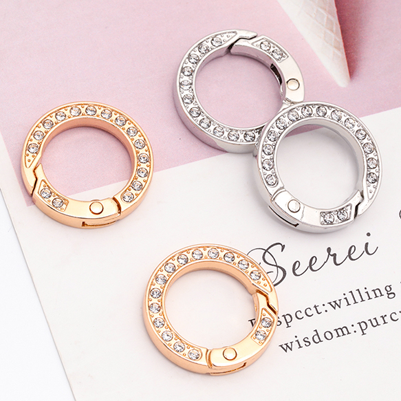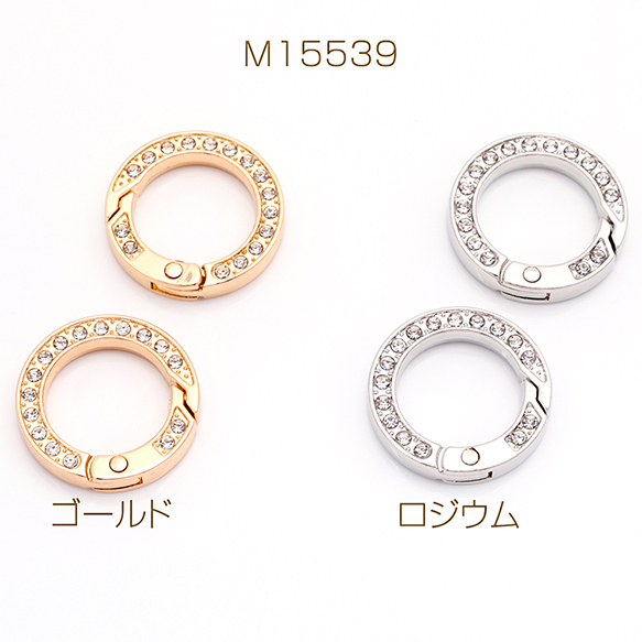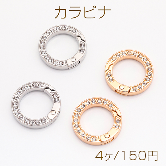 カラビナ キーリング ラウンド ラインストーン付き キーホルダー リング カニカン フック金具 留め具 約25mm(4ヶ)