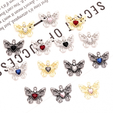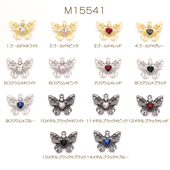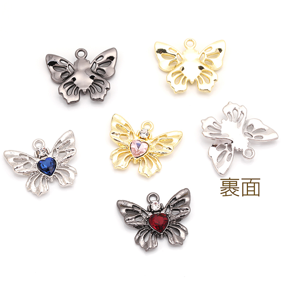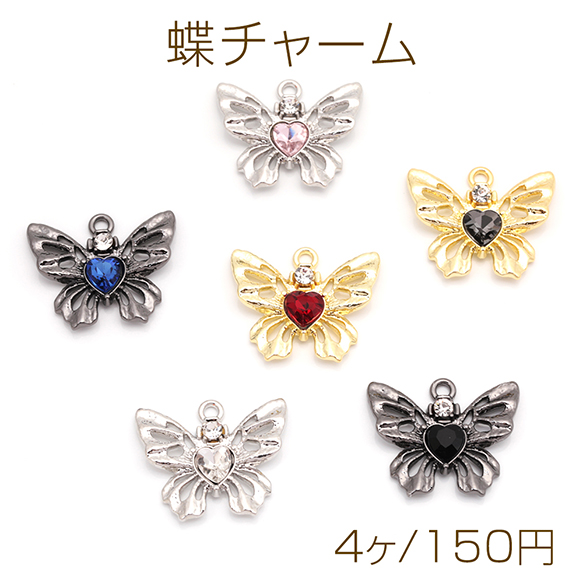 蝶チャーム ちょうちょ 蝶々 ハートのストーン付き メタルチャーム 約17×20mm(4ヶ)