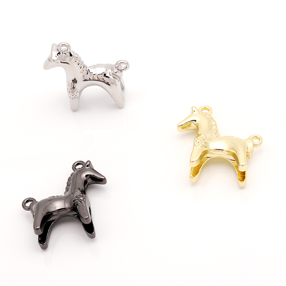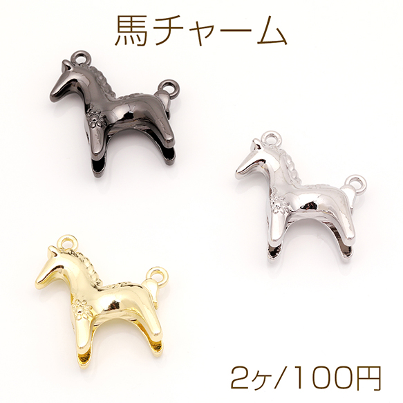 馬チャーム ウマ ポニー 太陽の模様付き 動物 アニマル 生き物 立体 メタルチャーム 約21×22mm(2ヶ)