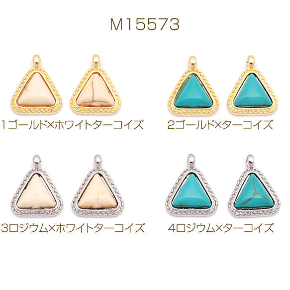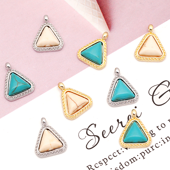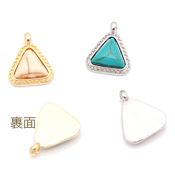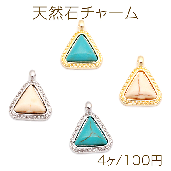天然石チャーム 三角形 トライアングル ターコイズ メタルチャーム 約12×15mm(4ヶ)