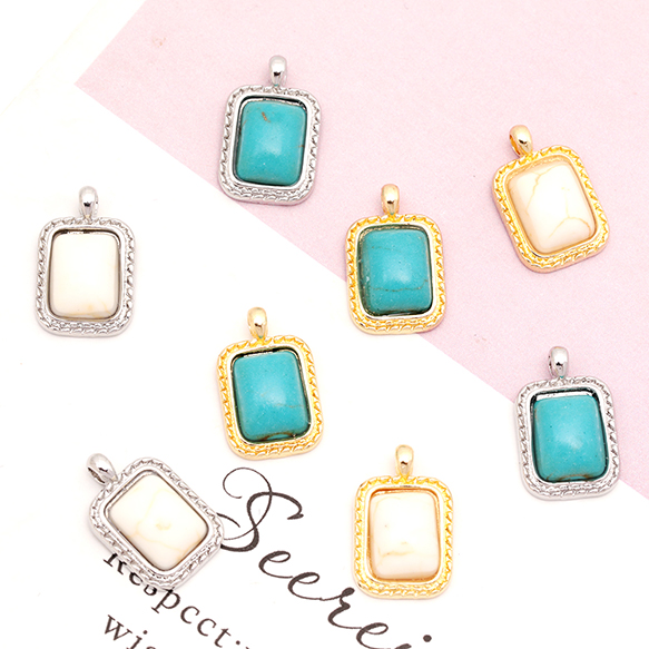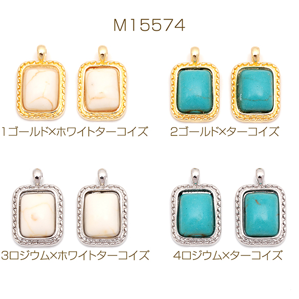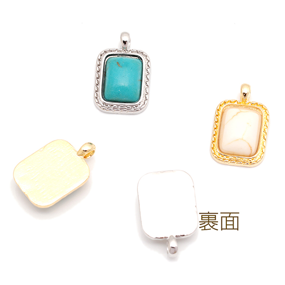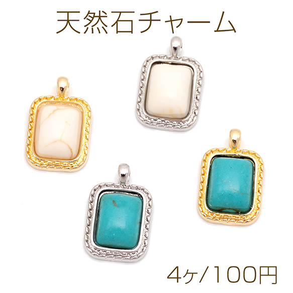 天然石チャーム 長方形 スクエア ターコイズ メタルチャーム 約10×15mm(4ヶ)