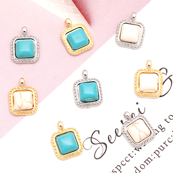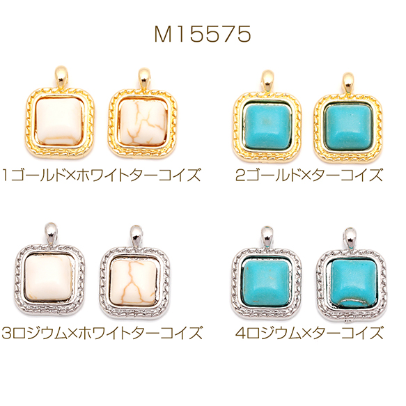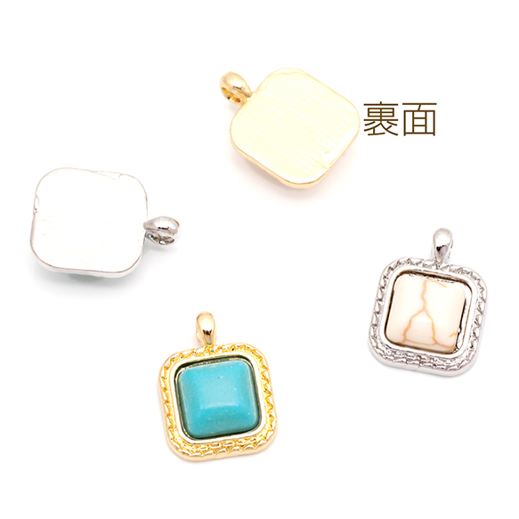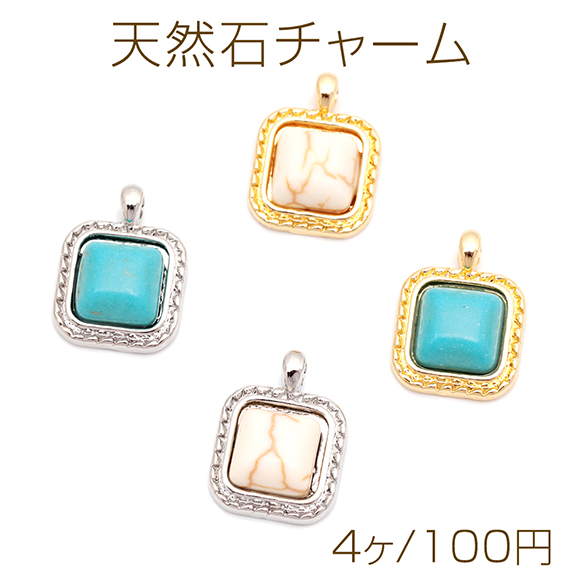 天然石チャーム 正方形 スクエア ターコイズ メタルチャーム 約10×13mm(4ヶ)