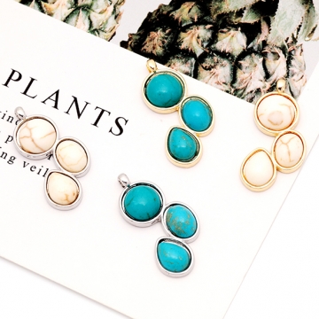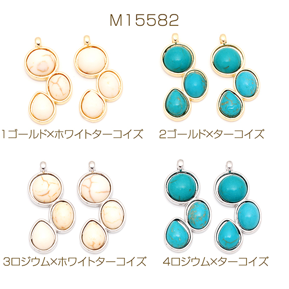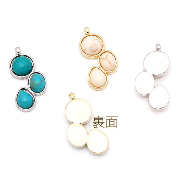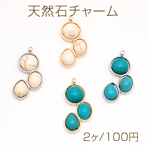 天然石チャーム 円形&楕円形&雫型 ターコイズ メタルチャーム 約13×27mm(2ヶ)