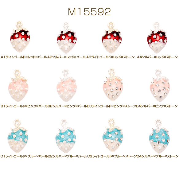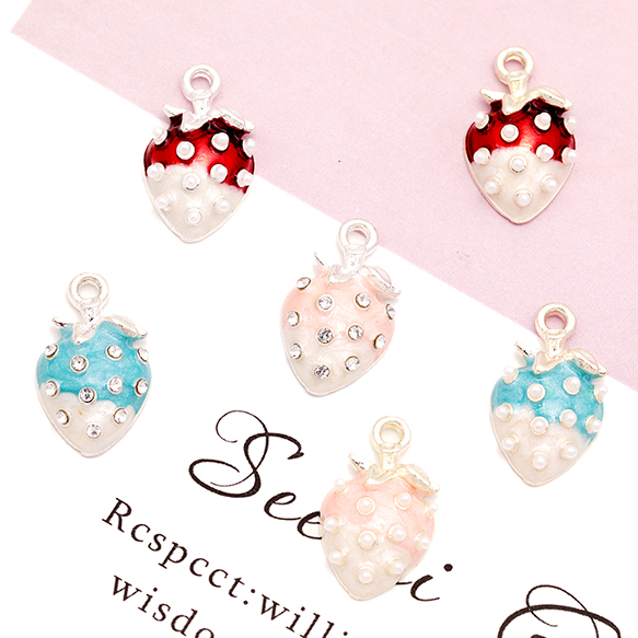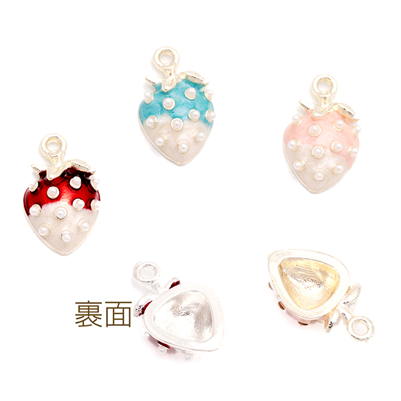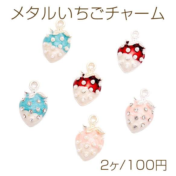 メタルいちごチャーム イチゴ 苺 エポチャーム ストーン/ABSパール付き 半面 メタルチャーム 約10×17mm(2ヶ)