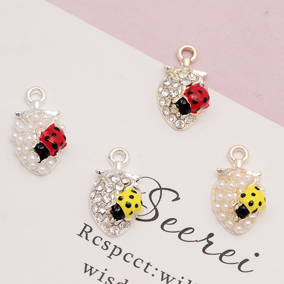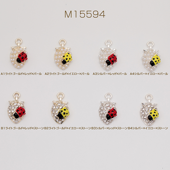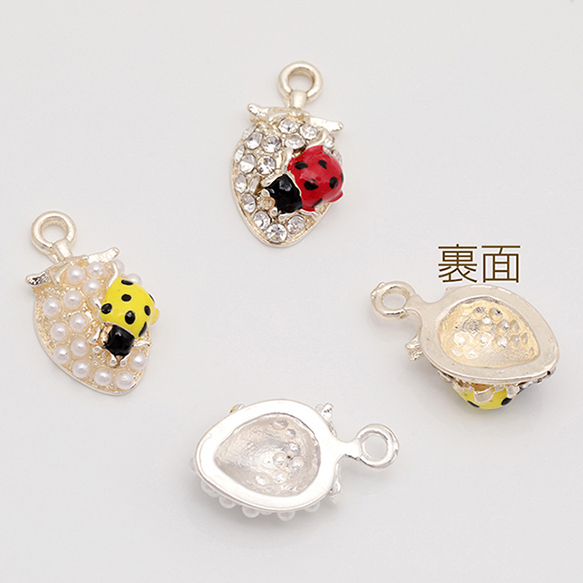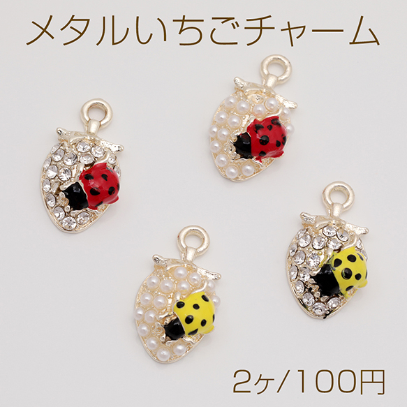 メタルいちごチャーム イチゴ 苺 てんとう虫 ラインストーン/ABSパール付き 半面 メタルチャーム 約9×16mm(2ヶ)