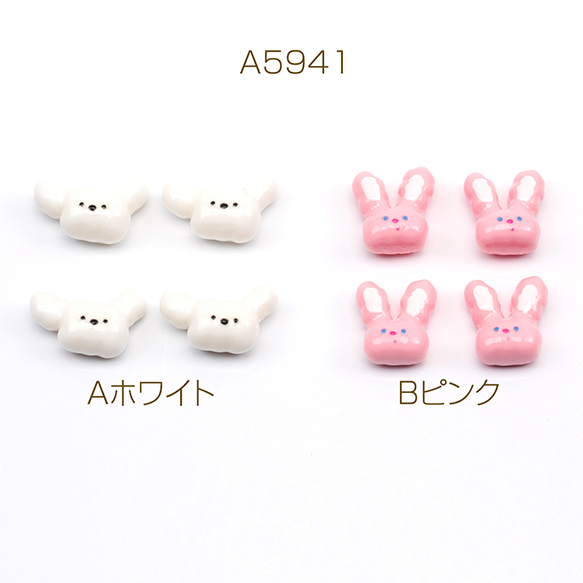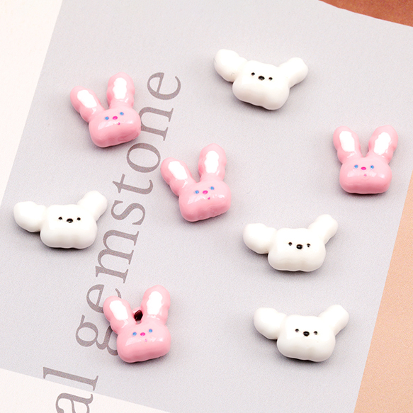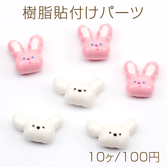 樹脂貼付けパーツ うさぎ ウサギ 兎 動物 アニマル カボション デコパーツ 貼り付けパーツ 全2種(10ヶ)