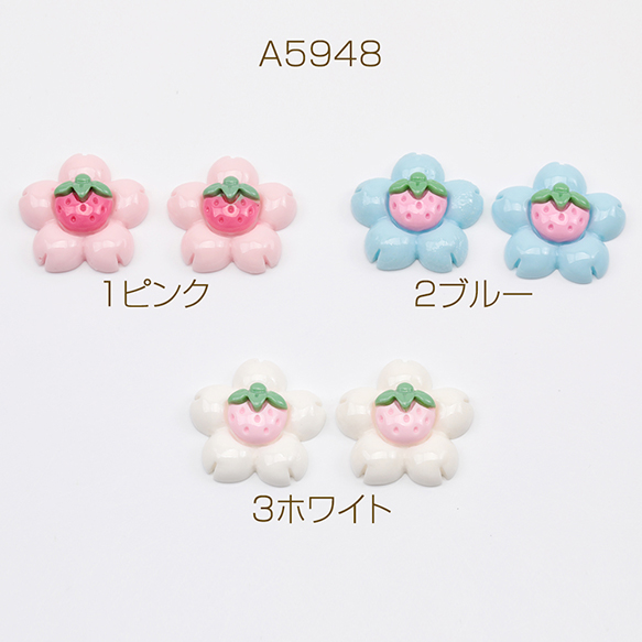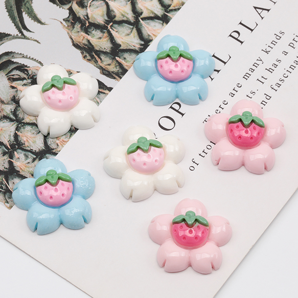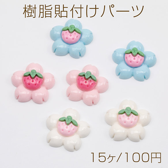 樹脂貼付けパーツ フラワー 桜 いちご カボション デコパーツ 貼り付けパーツ 約22mm(15ヶ)