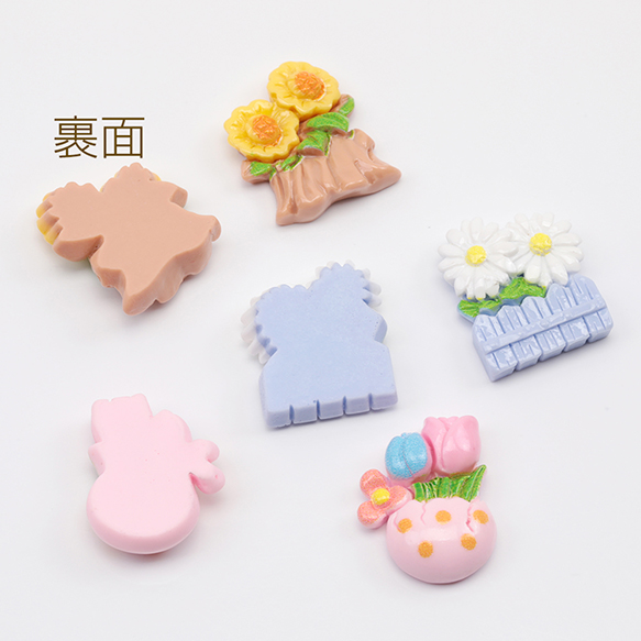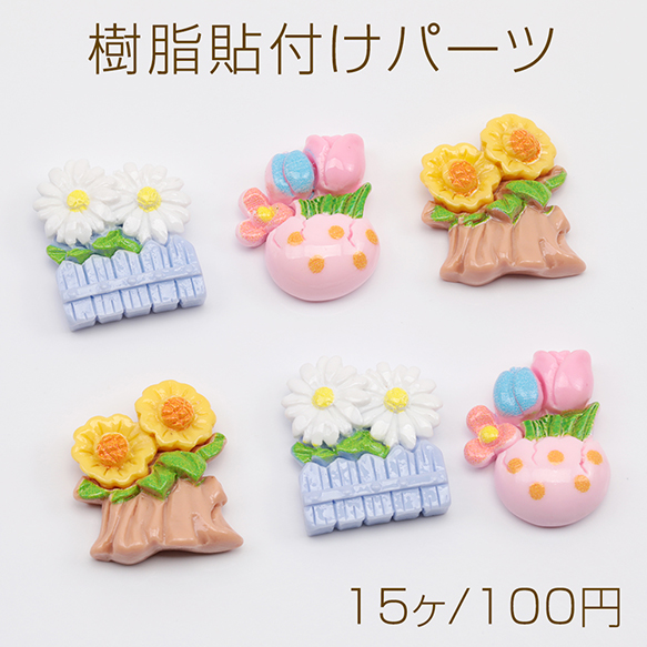 樹脂貼付けパーツ チューリップ ひまわり 菊 フラワー カボション デコパーツ 貼り付けパーツ 全3種(15ヶ)