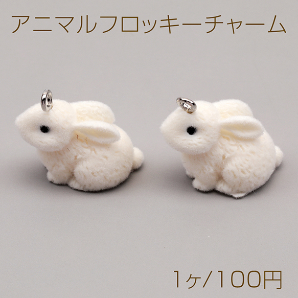アニマルフロッキーチャーム うさぎ ウサギ 兎 動物 アニマル 樹脂チャーム 約22×24mm(1ヶ)