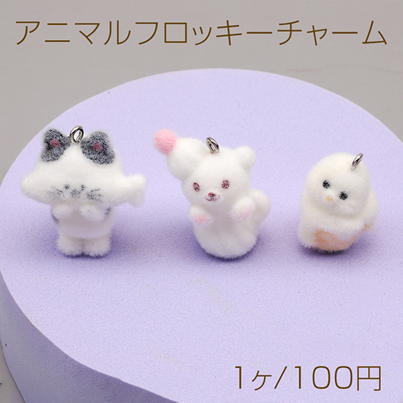 アニマルフロッキーチャーム ネコ 猫 クマ 熊 ひよこ 鳥 動物 アニマル 樹脂チャーム 全3種(1ヶ)