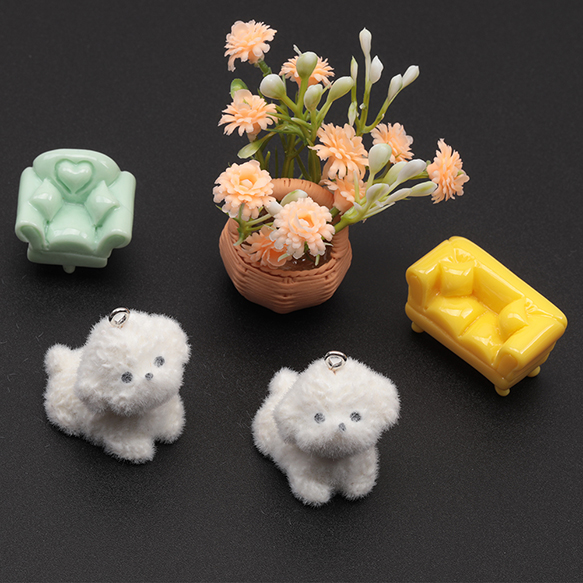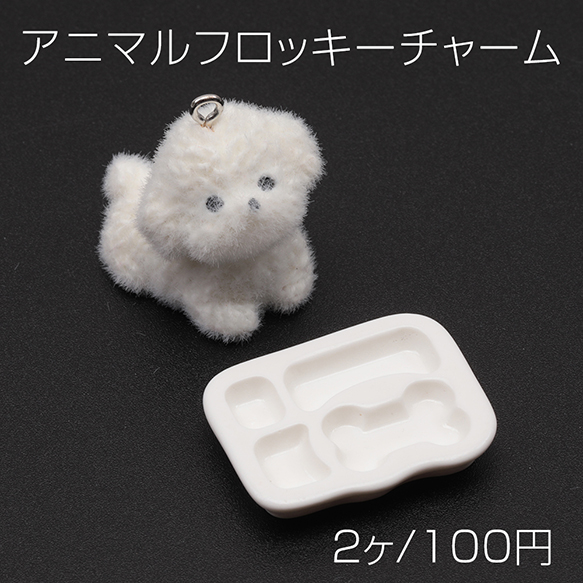 アニマルフロッキーチャーム こいぬ 仔犬 わんこ ペット 動物 アニマル 樹脂チャーム 約22×28mm(2ヶ)