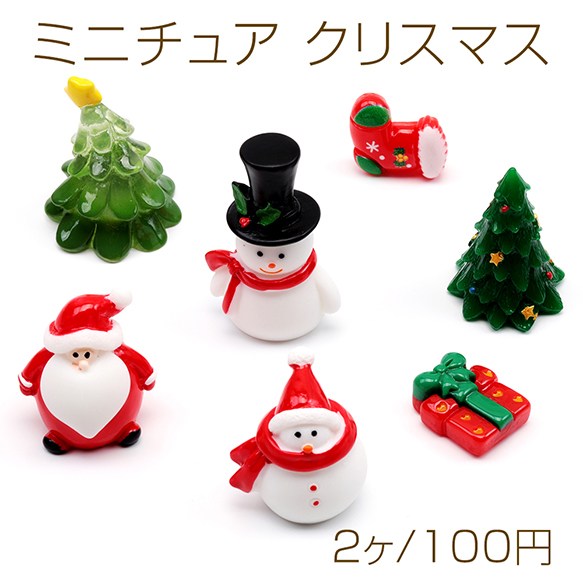 ミニチュア クリスマス ツリー サンタクロース 雪だるま 装飾 小物 ドールハウス 樹脂パーツ 全5種(2ヶ)