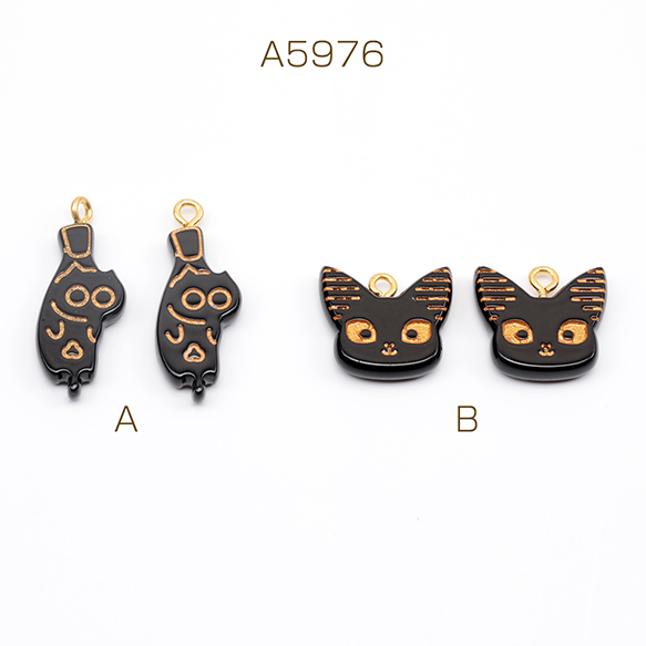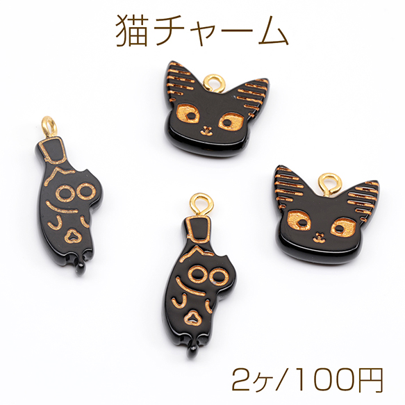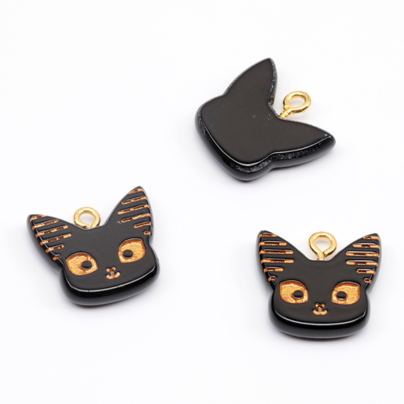 猫チャーム 樹脂製 猫 ねこ ネコ 黒猫 くびねっこ つまみ猫 猫顔 アンティーク調 アニマルチャーム カン付き(2ヶ)