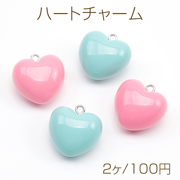 ハートチャーム 樹脂製 ぷっくり 推し活 パステルカラー ストラップ キーホルダー バッグチャーム 約25×27mm(2ヶ)