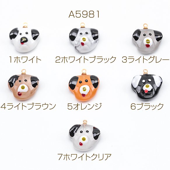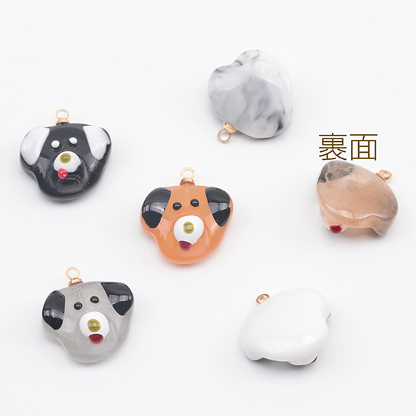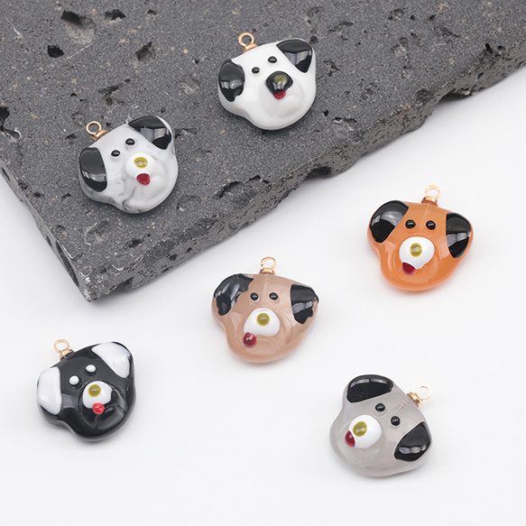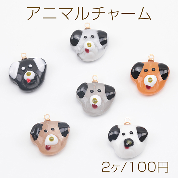 アニマルチャーム 樹脂製 犬顔 イヌ 犬 ドッグ いぬチャーム 犬パーツ 動物チャーム カン付き 約15×17mm(2ヶ)