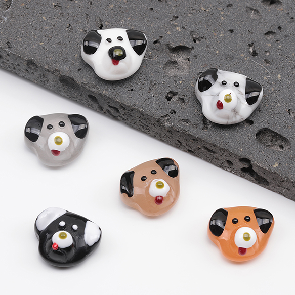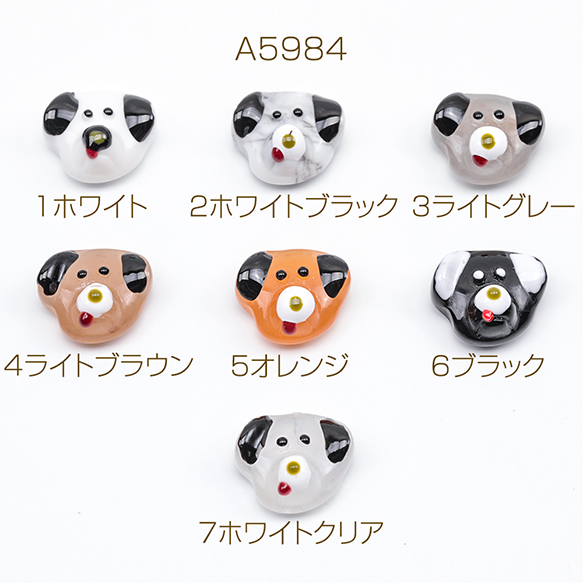 アニマル貼付けパーツ 樹脂製 犬顔 イヌ 犬 ドッグ 動物 アニマルデコパーツ いぬの装飾パーツ 約15×17mm(2ヶ)