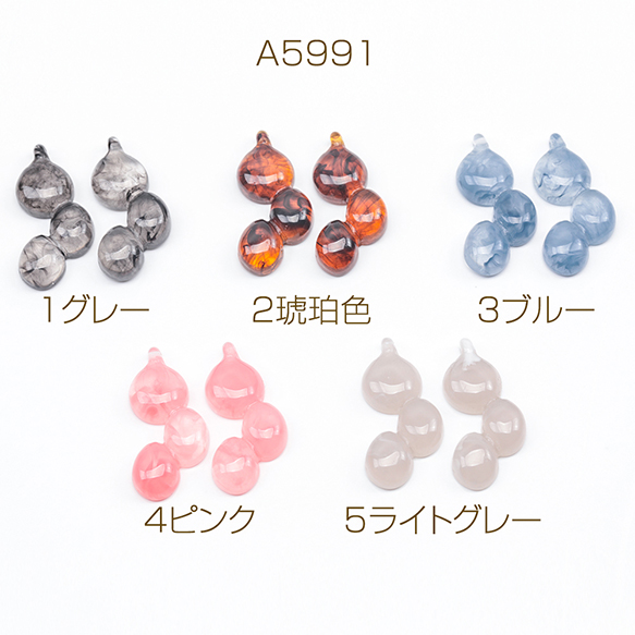 樹脂チャーム 三連 楕円形 グラデーション マーブル 樹脂パーツ 約13×26mm(6ヶ)