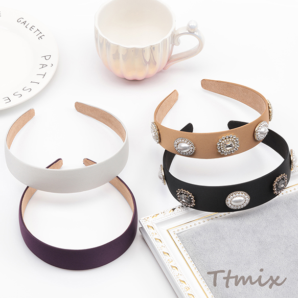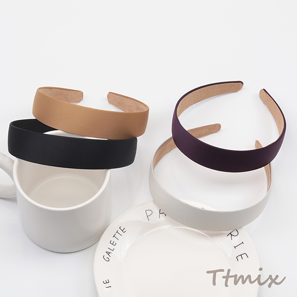 カチューシャ 太め サテン生地 シンプル プラスチック製 ハンドメイド用 手芸 工作 金具 幅約3cm(2ヶ)