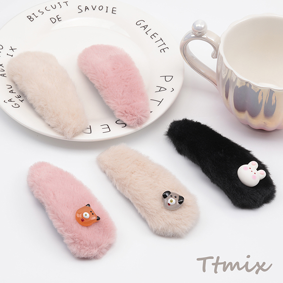 バレッタ ふわふわ 秋冬用 可愛い ヘアアクセサリー 髪留め ヘアクリップ 約4×10cm(4ヶ)