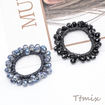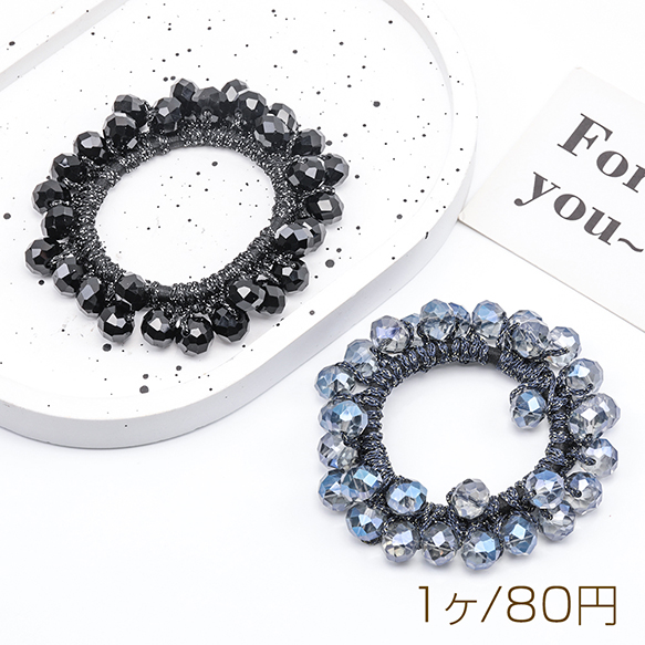 ヘアゴム 手編み ガラスビーズ ラメ キラキラ 髪留め ヘアアクセサリー 単品(1ヶ)