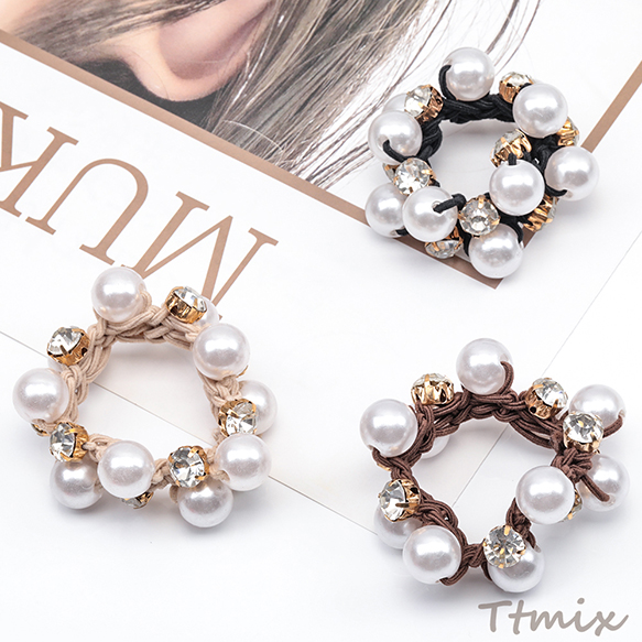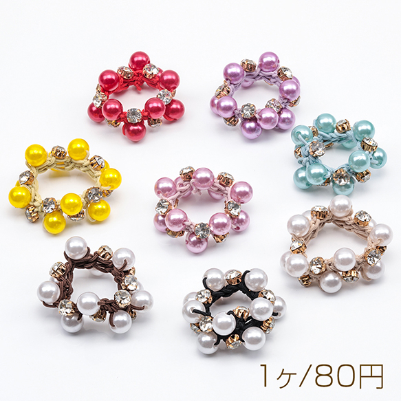 ヘアゴム 手編み ABSパール ストーン付き カラフル キラキラ 髪留め ヘアアクセサリー 単品(1ヶ)