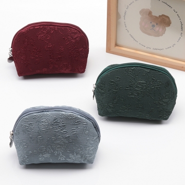 半円ポーチ シエル型ポーチ 花柄プリント コスメポーチ メイクポーチ 化粧ポーチ 小物入れ Size約8×13×15cm