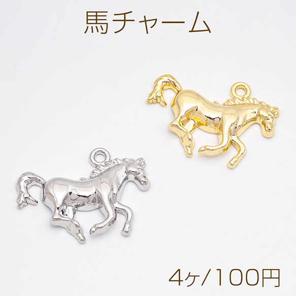 馬チャーム ウマ 競走馬 動物 アニマル 半面 メタルチャーム 約22×30mm(4ヶ)