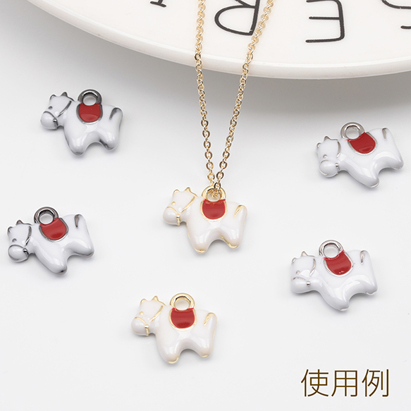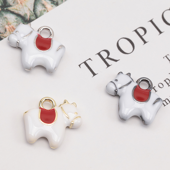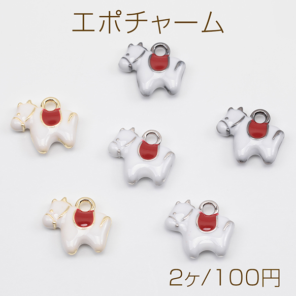 エポチャーム ウマ 白馬 ポニー 鞍付き 動物 アニマル 立体 メタルチャーム 約13×14mm(2ヶ)