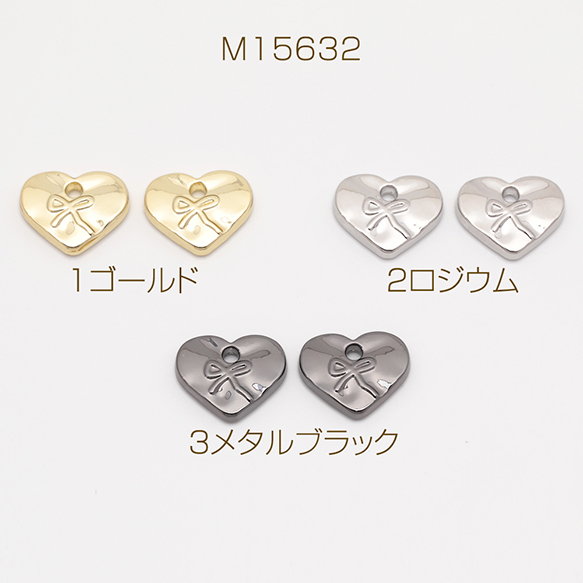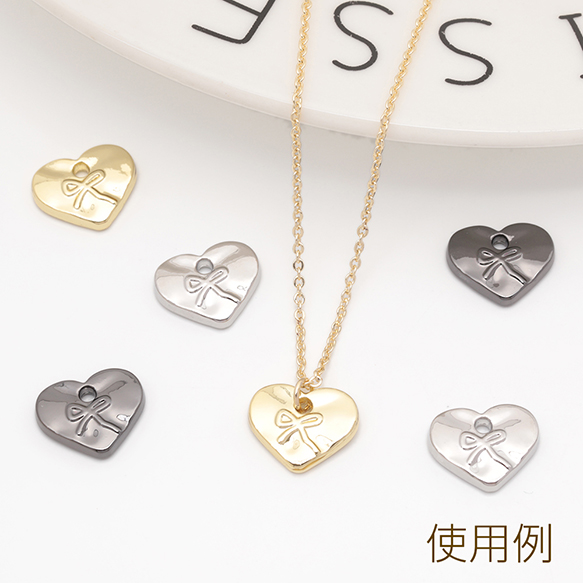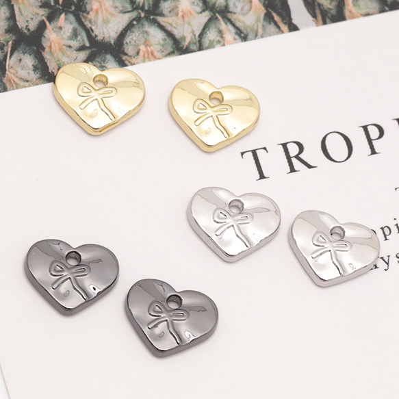 メタルプレートチャーム ハート リボン模様 穴あき メタルチャーム 約10×12mm(6ヶ)