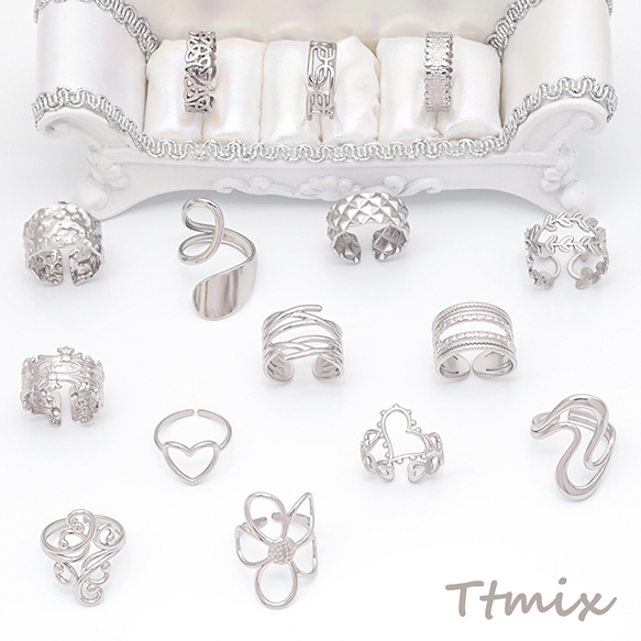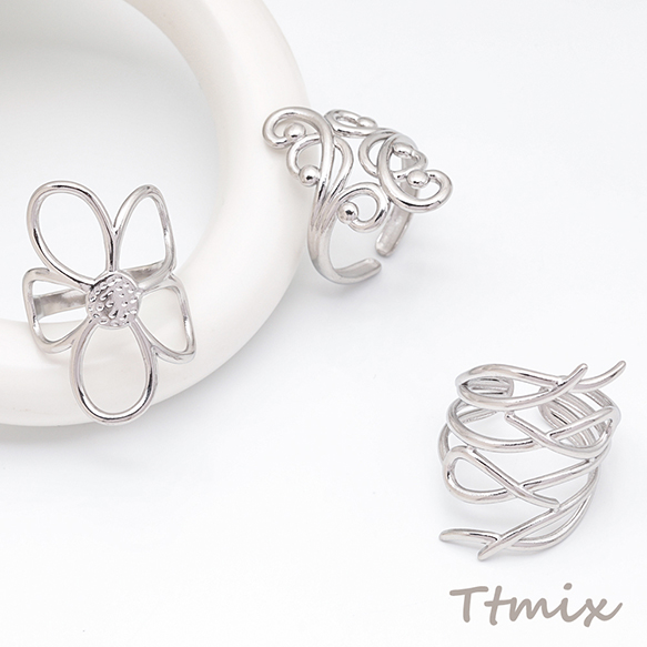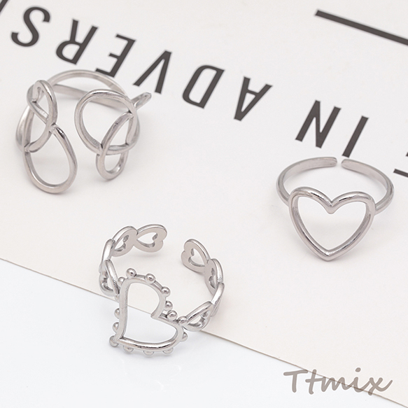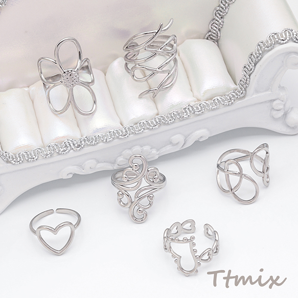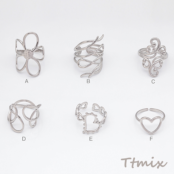 ステンレスリング 指輪 フェミニン シンプル ユニーク おしゃれなデザイン オープンリング 16号内径約18mm(1ヶ)