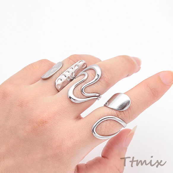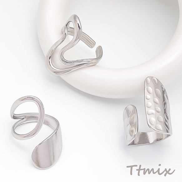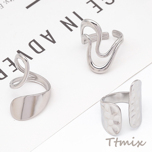 ステンレスリング 指輪 存在感◎ シンプル ユニーク おしゃれなデザイン オープンリング 16号内径約18mm(1ヶ)