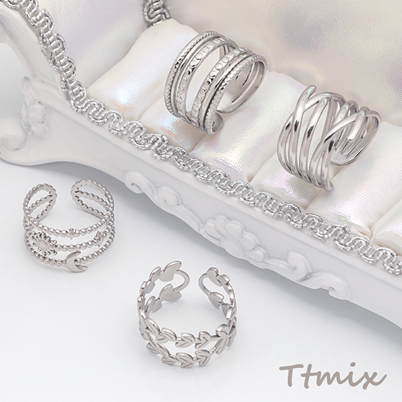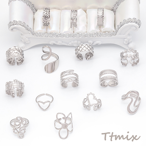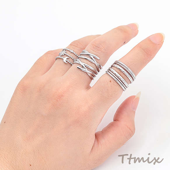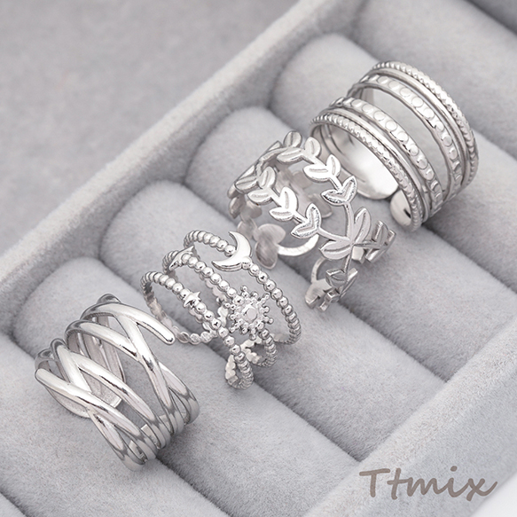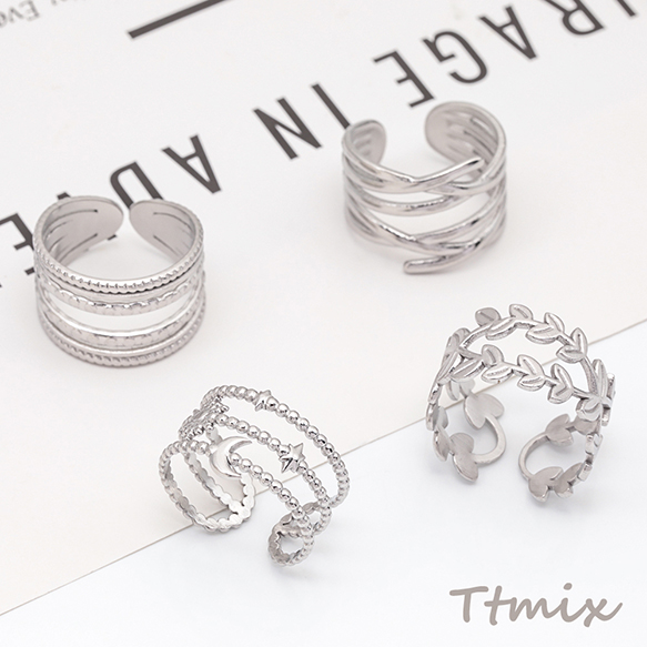 ステンレスリング 指輪 スマート シンプル ユニーク おしゃれなデザイン オープンリング 16号内径約18mm(1ヶ)