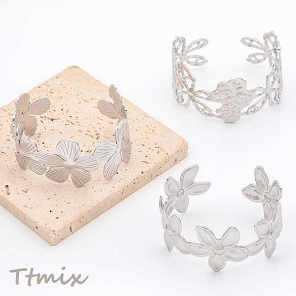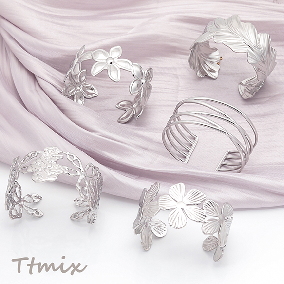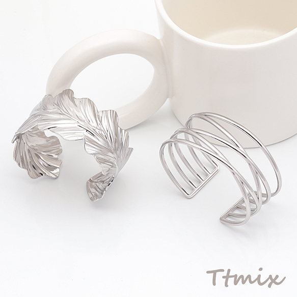 ステンレスブレスレット 存在感◎ シンプル ユニーク おしゃれなデザイン オープンバングル 内径約60mm(1ヶ)