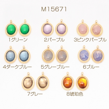 樹脂チャーム オーバル 楕円形 マーブルカラー カラフル メタルチャーム 約11×17mm(4ヶ)